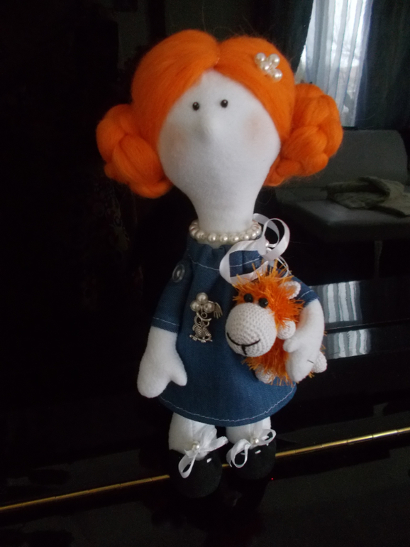Хочу показать вам мою прошлогоднюю куклу. Шилась в подарок ко дню рождения приятельнице (кривенько-косенько...). Ей нравится. Мне тоже. Прошу прощения за фон и качество фото.