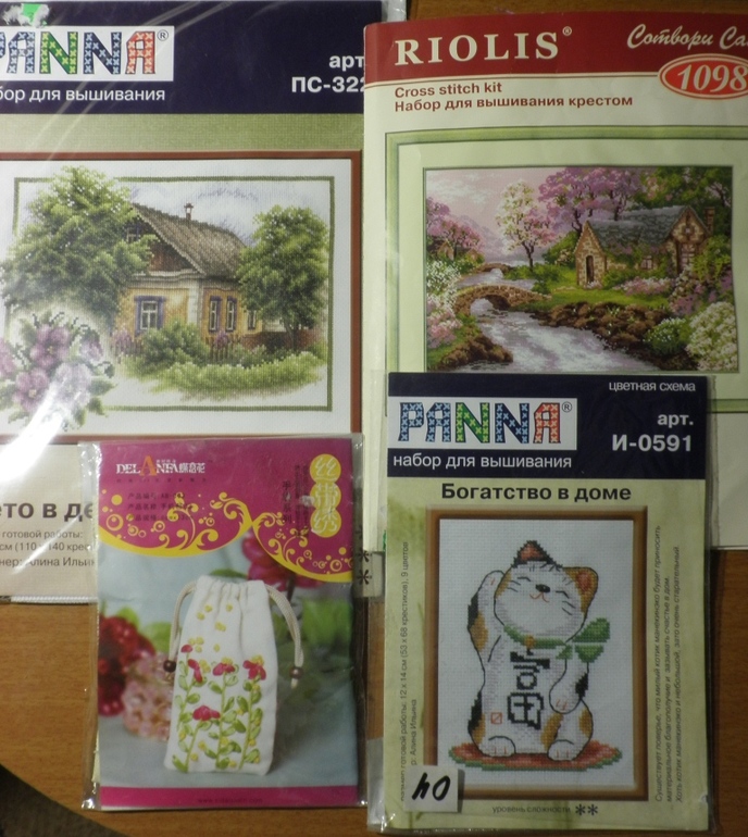 Вышивальный слоник: 2 новых набора (Панна "Лето в деревне" и чехольчик лентами) и остатки от 2-х наборов (Панна "Богатство в доме" и Риолисовский пейзаж)