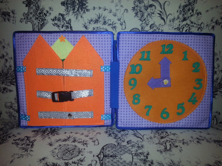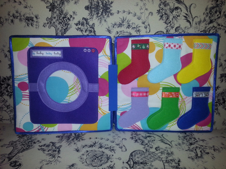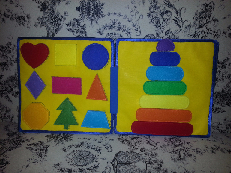 Размер книги 23*23 см, состоит из 6 листов ( 12 страниц - 10 игровых страниц и 2 обложки ), съемных деталей получилось 73 шт..