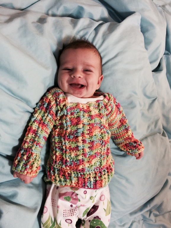 Хочешь или не хочешь, а смотришь и в улыбке расплываешься)) до чего позитивно! Свитерок прелесть, как и пупсена)))