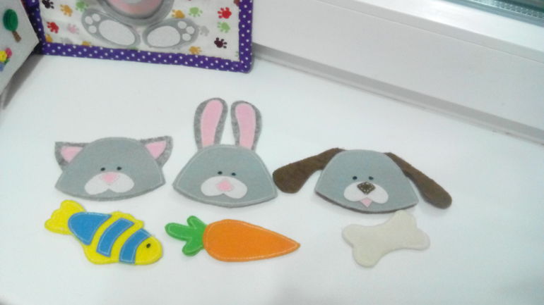 Не стала делать как все только разные ушки - сделала три разные мордочки + волшебный животик-кармашек (кормим животное) + подвижные ручки (играем в ку-ку)