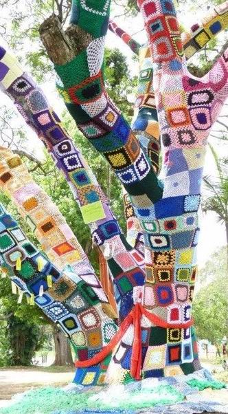 "Вязаное граффити на улицах неожиданно цепляет, удивляет и в большинстве случаев заставляет улыбнуться. Вязальщики-диверсанты стараются привнести в обыденную городскую жизнь более яркие краски и расшевелить фантазию горожан встречей с неожиданным: они обвязывают деревья, памятники, скамейки и даже автобусы..." (подробнее у меня в дневнике)