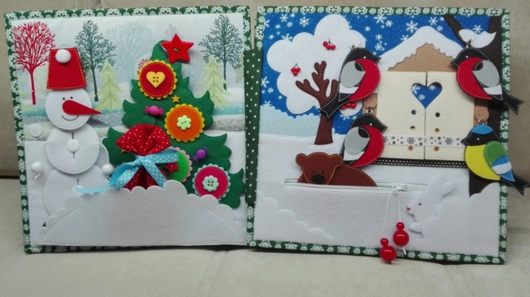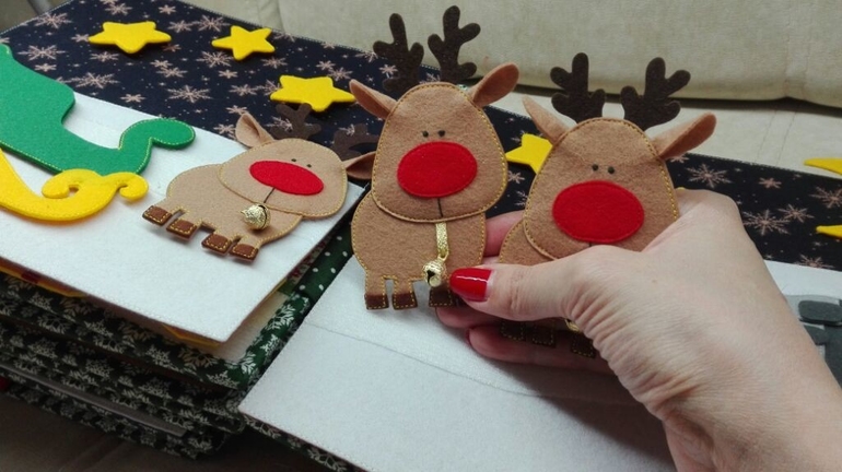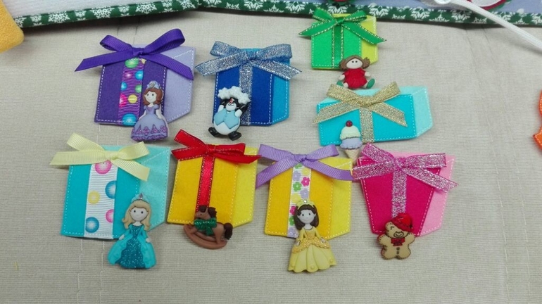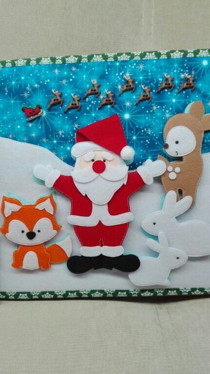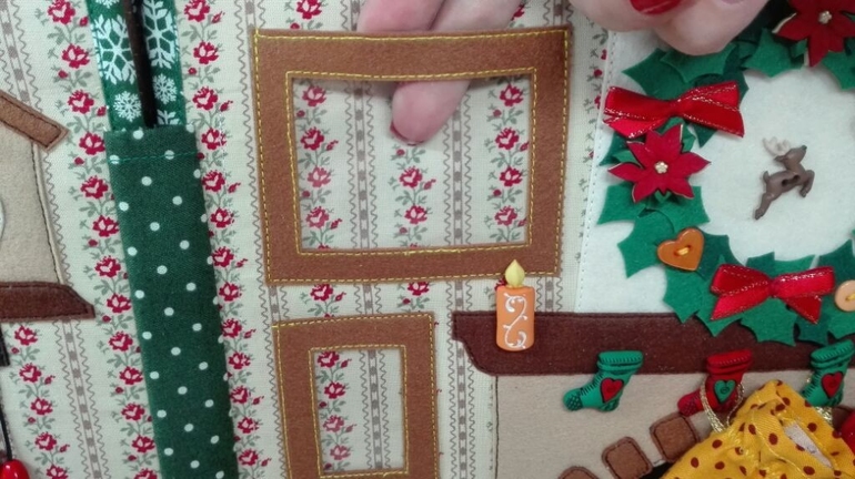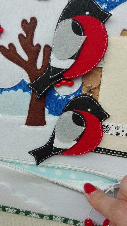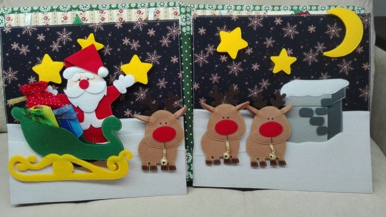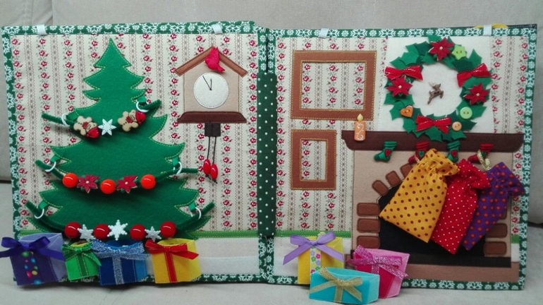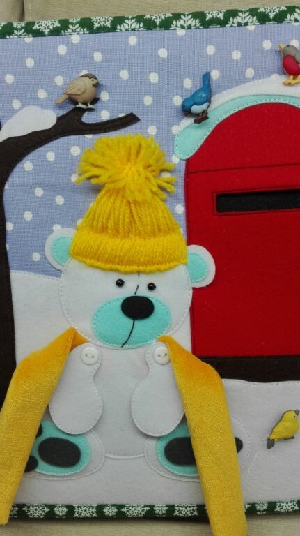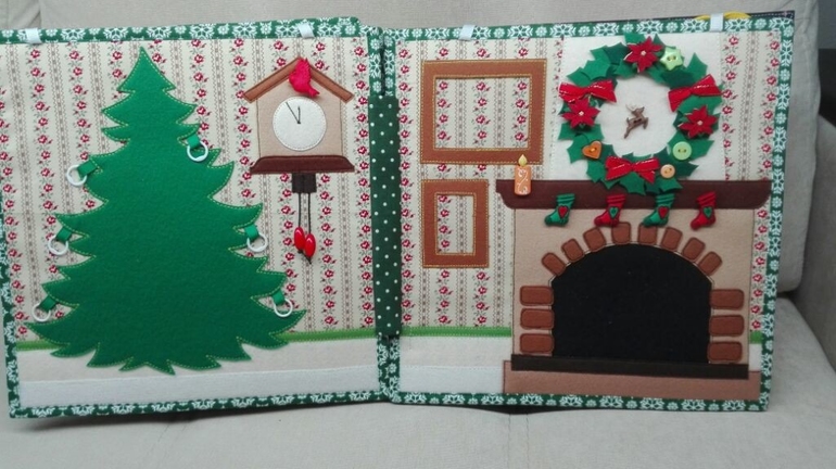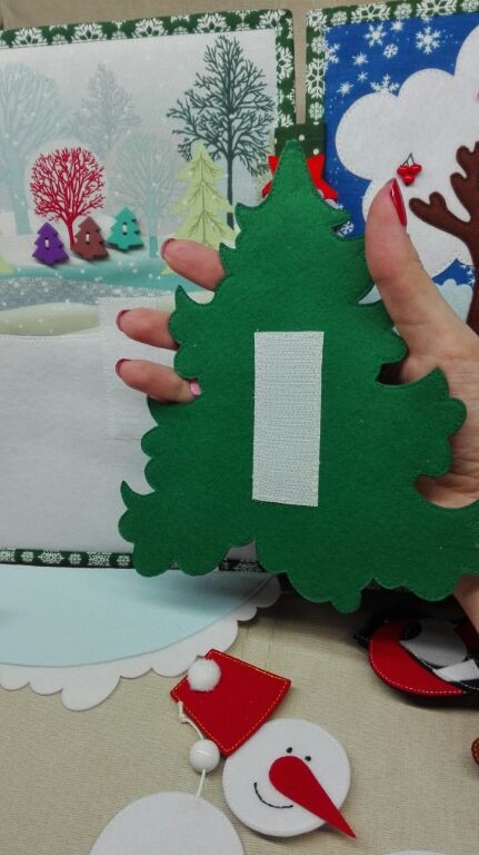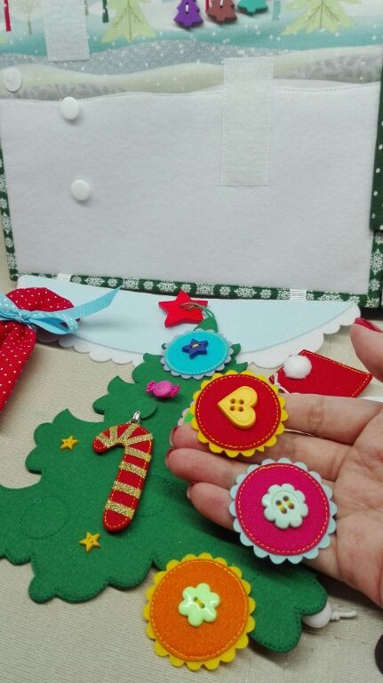 Фабрика подарков)мешочки вешаются, подарочные коробки крепятся на ленту велкро, в полосатом кармане должны лежать письма.