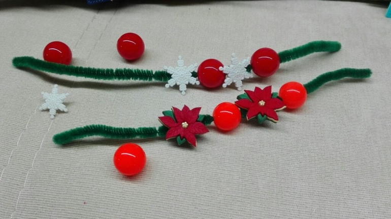 На эту пушистую проволоку легко нанизываются бусины и фигурные пуговицы и они не сползают.