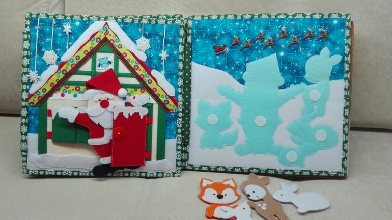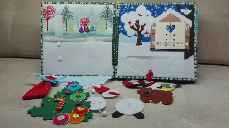 Формат книги 25*25 см, есть немного недоделок(их доделаю позже), время поджимало, завтра книга улетает в Великобританию) Сюжеты полностью основаны на пожеланиях Аниной мамы и особое внимание уделено легенде о Санта Клаусе.