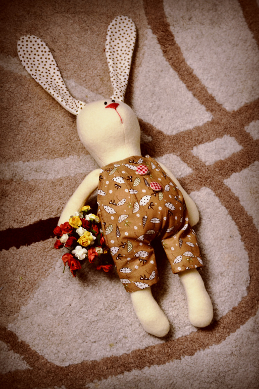 очень клевенький!! Надя могу вас попросить прислать мне выкройку штанишек? с самими зайцами у меня проблем нет, а с одеждой неособо, фантазия на выкройки отсутствует)
