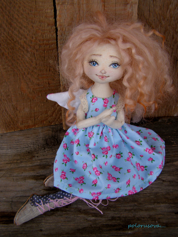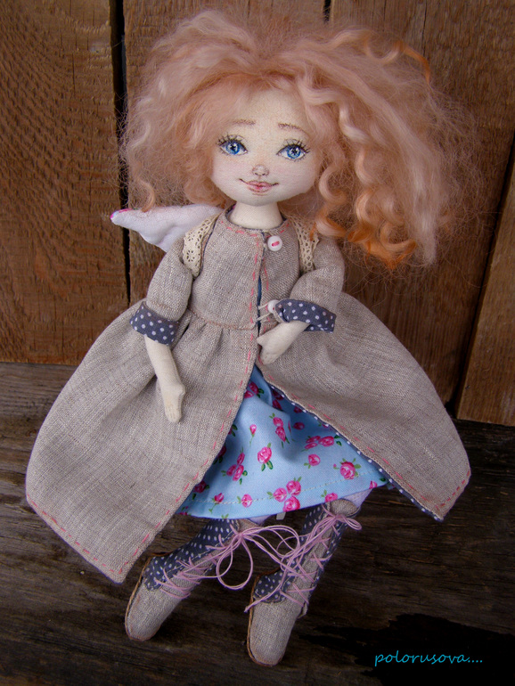 Игрушечный мир - животныеДумаете... ангел-это белое и пушистое создание..)) а нет! Она ясная и чистая девочка с небесными глазами и изящными длинными ножками). В бирюзовом платье и белоснежных чулочках...а ещё кудри...цвета розового шампанского!. И модное платье-пальто из льна, а ещё высокие текстильные сапожки. Всё как настоящее, только маленькое)). Самое главное...конечно ..крылышки, которые можно снимать для того, чтобы спуститься на землю.. и жить...среди нас.....