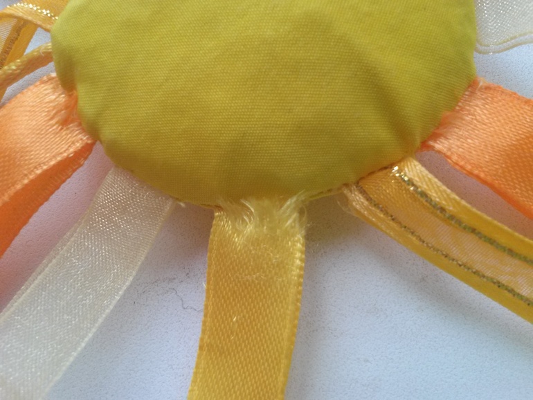На многих деталях по задумкам есть ленточки-уж больно любим мы их обсмактывать. Для начала я сшила солнышко и буквально через 2 дня оно стало уже таким: