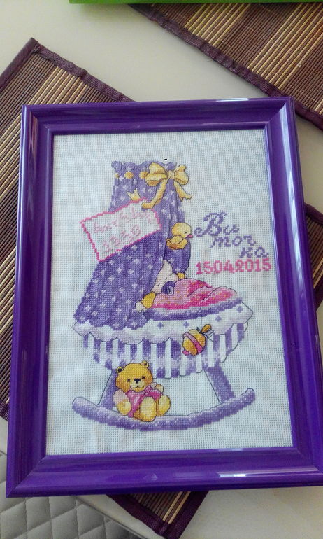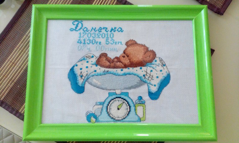 Вышивка картин. Крестиком, гладью, бисером, стразами, лентами, схемы по вышивкам, процессыВот и закончила я метрики для своей ребятни, вчера купила рамочки и уже висят они в детских. И вот что получилось