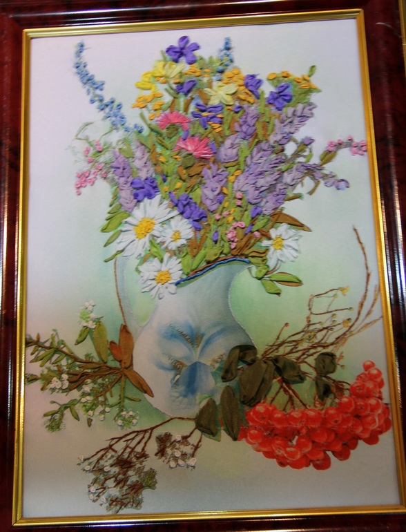 Ну и мой улов покажу напоследок: набор для вышивания лентами - вот так выглядит отшитый: