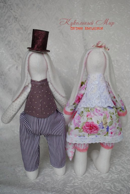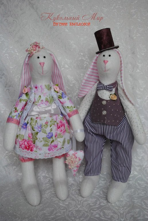 Вот такие у меня в преддверии 14 февраля получились зайцы. Рост 34 см, стоят сами.