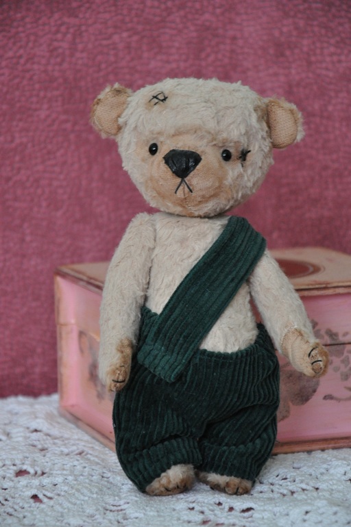 Тедди: мишки и их друзья.Уговорила наконец миху попозировать и удалось сделать несколько кадров. Захарка сшит из вискозы, набит опилками, утяжелен гранулятом, стекл.глазки, шплинтовые крепления, голова покачивается. Рост 22 см. Одет в вельветовые брючки, которые можно снимать.