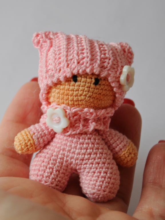 Амигуруми (вязаные игрушки)Не особо оригинальное имя, понимаю,а другого не напрашивается. Сотворила её .................(удалено модератором) для своей дочки. Рост 6,3см. шапка утром снималась, теперь все надежно пришито)) Ручки двигаются. Очень нравится