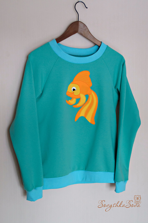 Шитье одежды, выкройки, ремонт одежды, шторы, швейные машины (уже приобретенные)Комплект для веселого семейства)) У папы на свитшоте кот, у мамы и дочки - золотые рыбки. Ткань - футер, аппликация из интерлока.