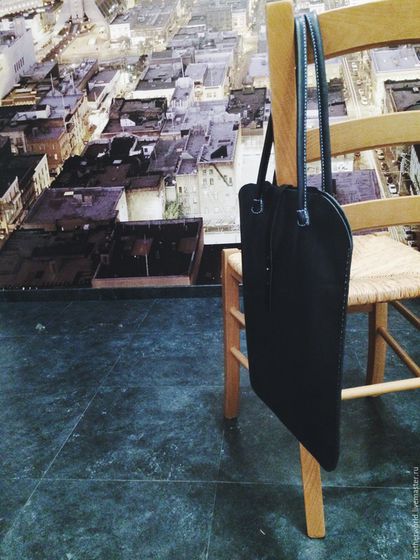 Изделия из кожиТонкая сумка сшита вручную из темно-синего краста,покрыта,отполирована. Прошита голубой вощеной ниткой. Застёжка -кобурная кнопка. Размер -29,5см*39см(с лямками высота-59см). Стильная. Удобная.