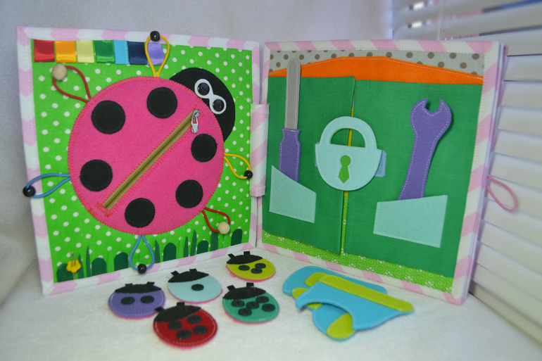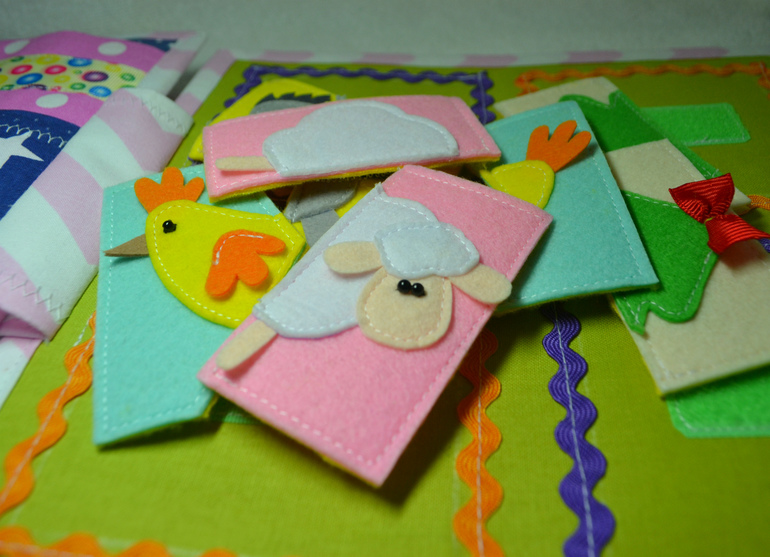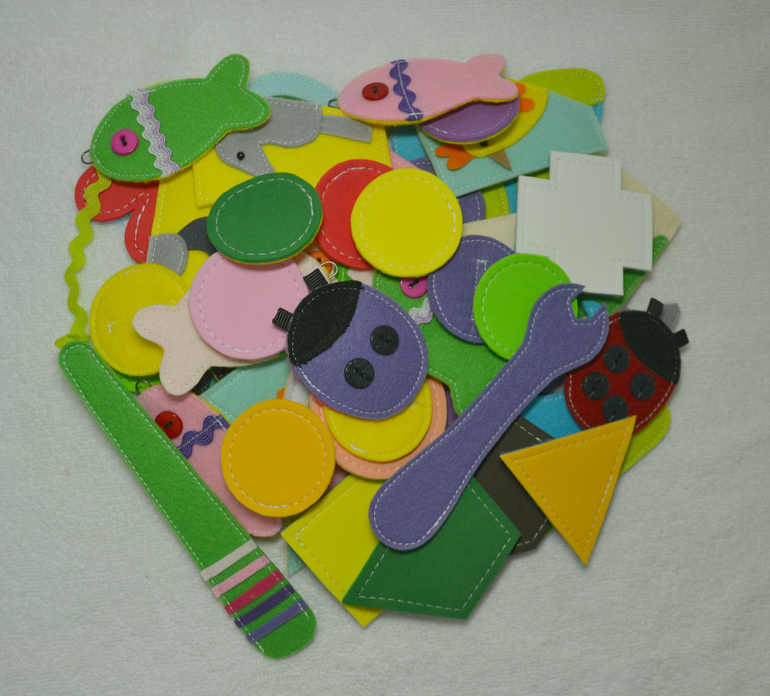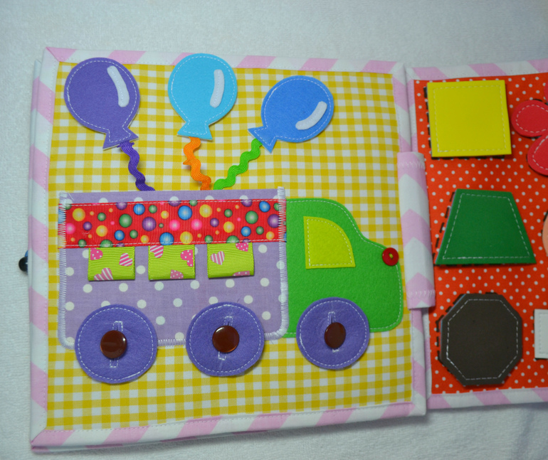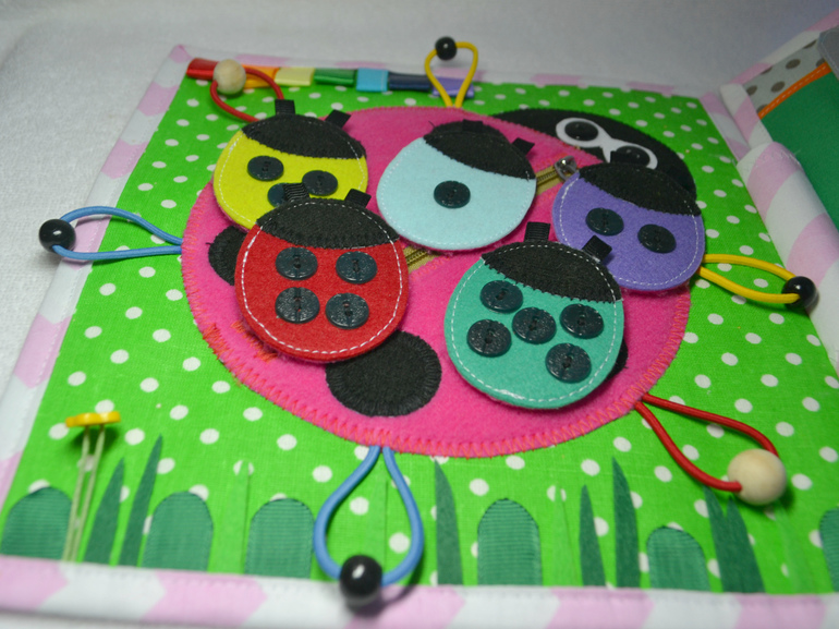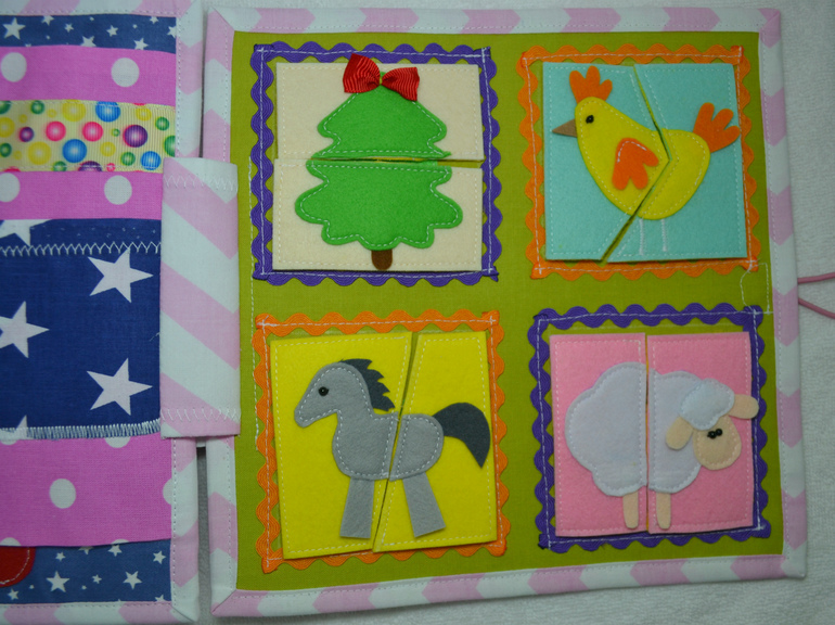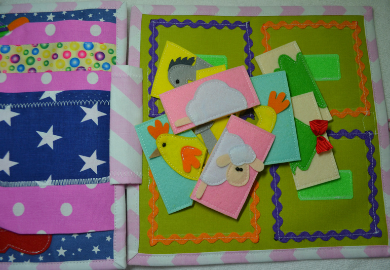 Развивающие игрушкиСшила еще одну развивающую книжечку. Съемных деталек в ней насчитала-46шт.