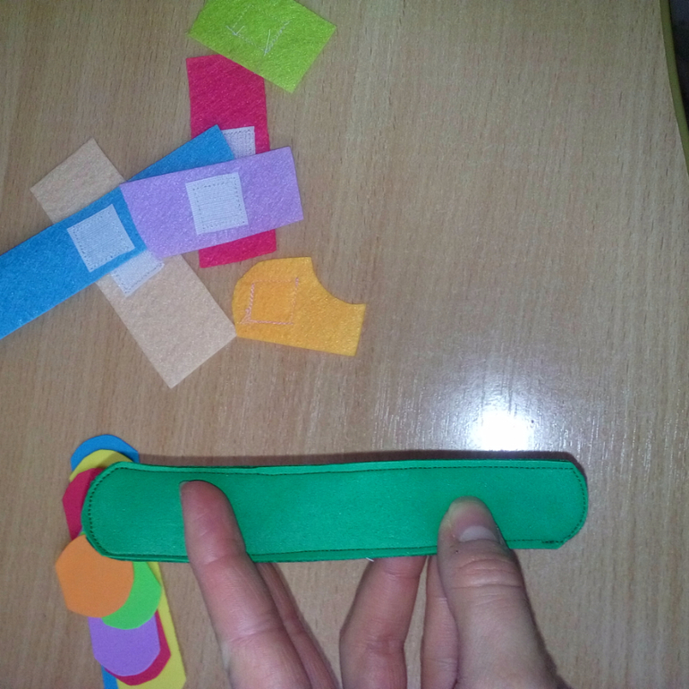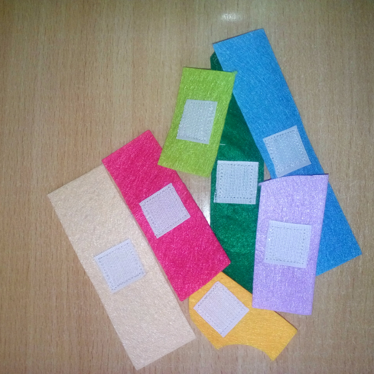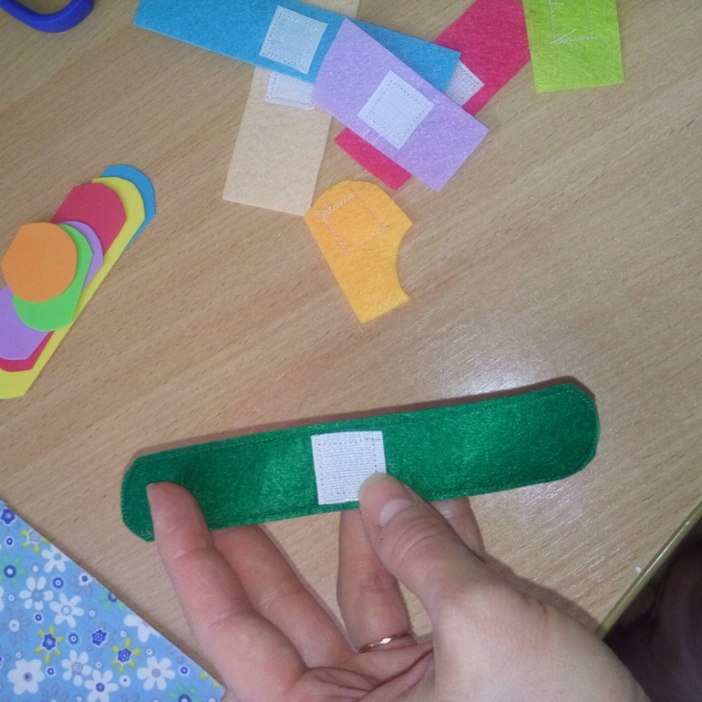 5. К кусочкам фетра подходящего цвета пришила колючие кусочки велкроленты.