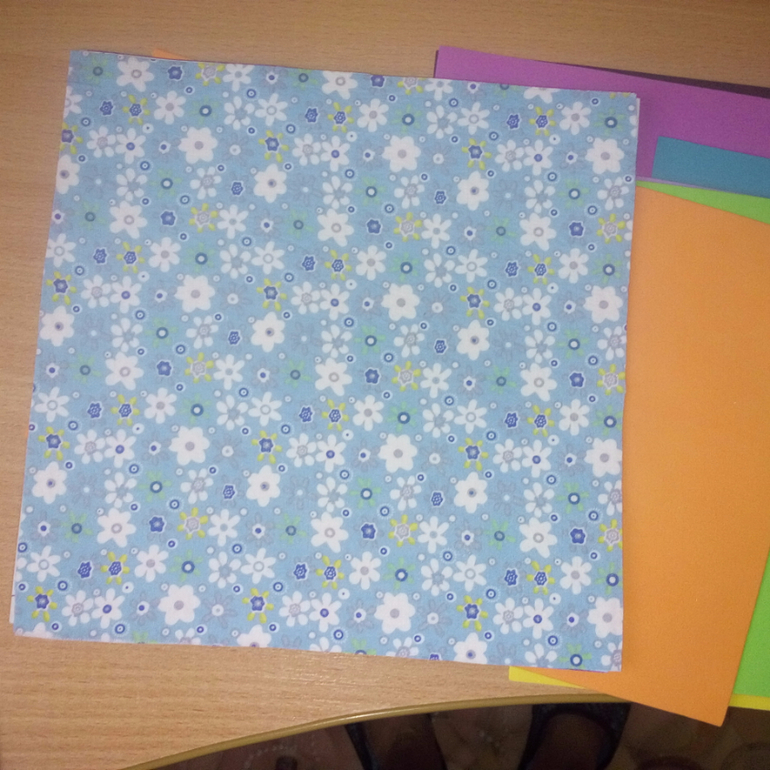 1. Выбрала основу для первой странички, аккуратно обрезала ее, все выровняв по шаблону (мой шаблон - квадрат 23*23 из картона)
