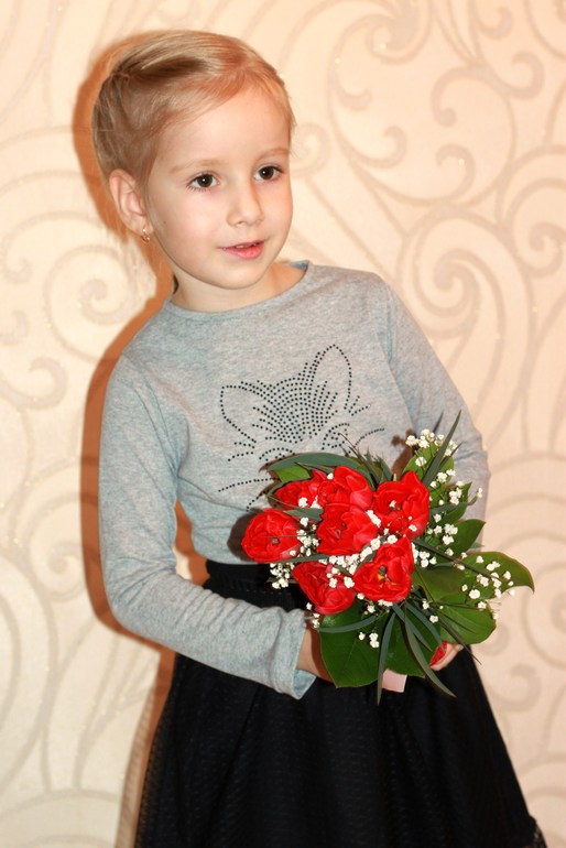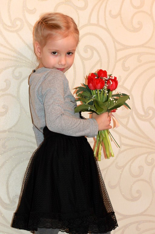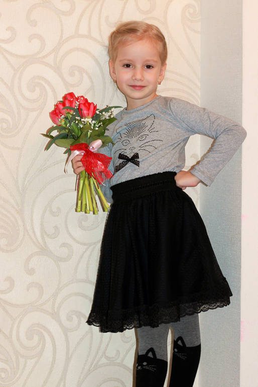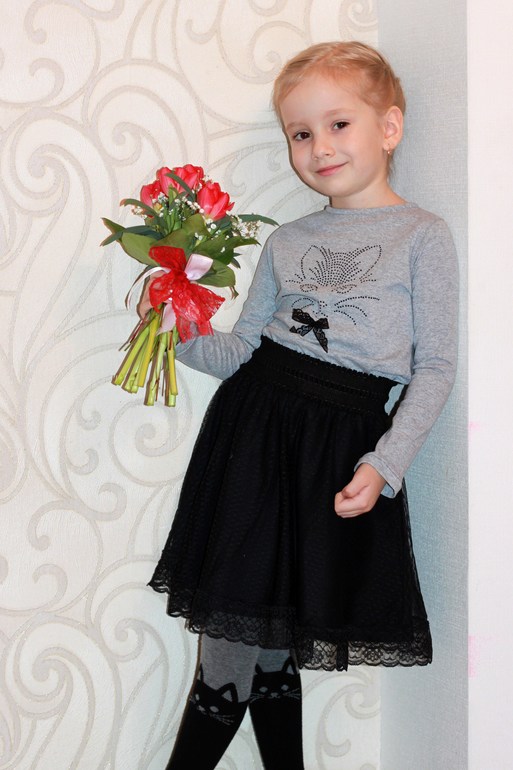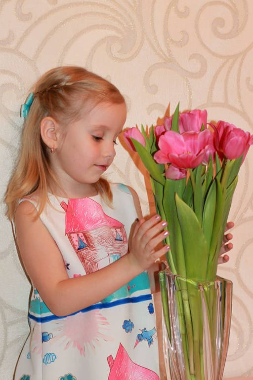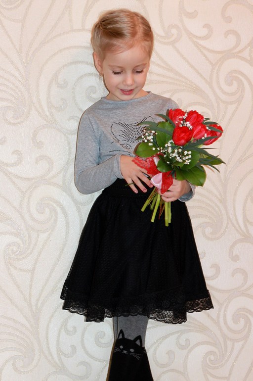 Да, вот к Полинкиному букетику из тюльпанов подходящего платья или юбки с тюльпанами не нашлось