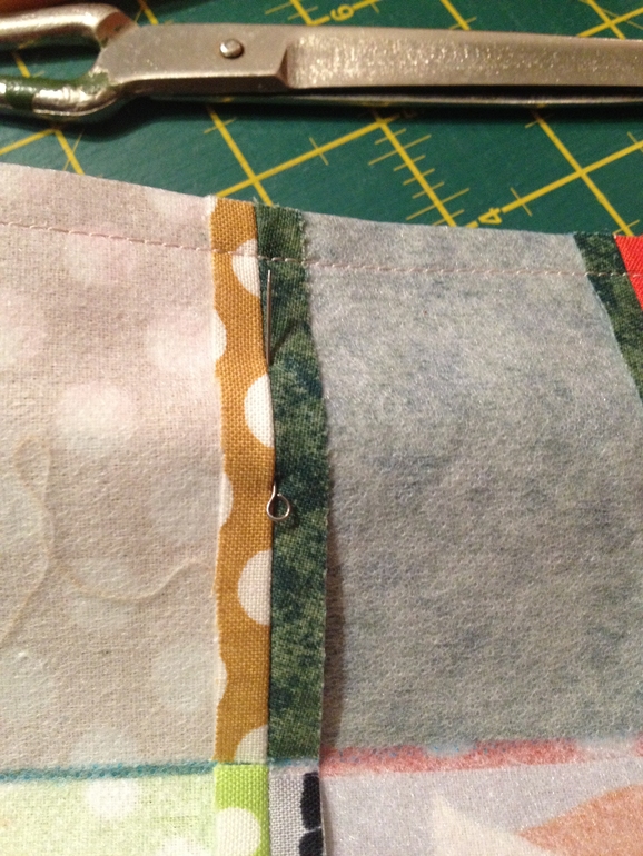 Шьем поперек. Чтоб было прям неприлично ровно, можно сколоть вот так, прямо булавочками в шов. Я все булавки согнула слегка)) мне так удобней. Опять разрезаем швы и разутюживаем, получается вот так: