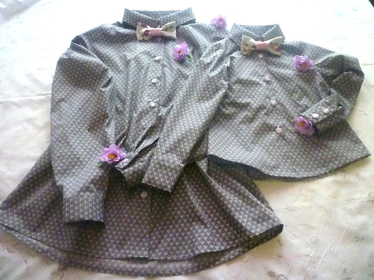 Шитье одежды, выкройки, ремонт одежды, шторы, швейные машины (уже приобретенные)В садике был утренник и задача была такова, дочь похожа на мамочку. У мамы возникла идея пойти в одинаковых рубашках, я эту идею воплатила, расцветку выбрала сама мамочка.