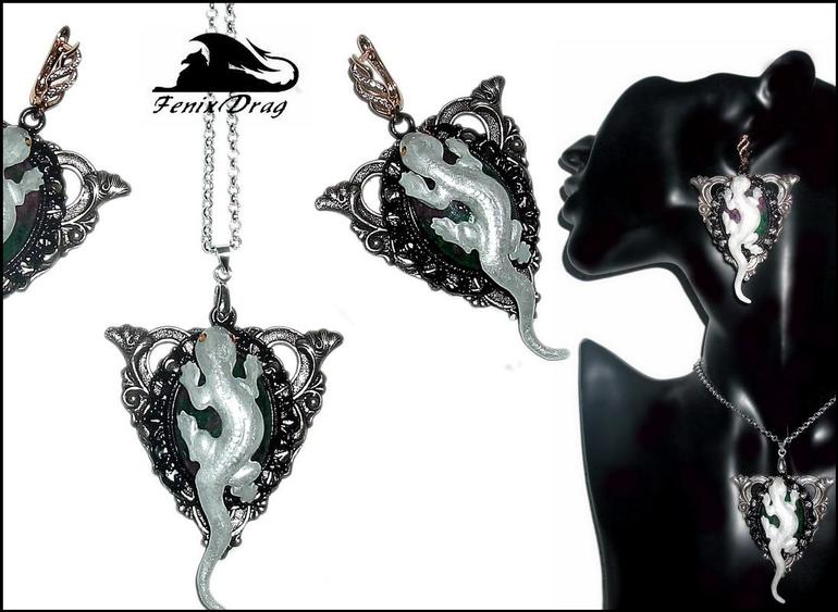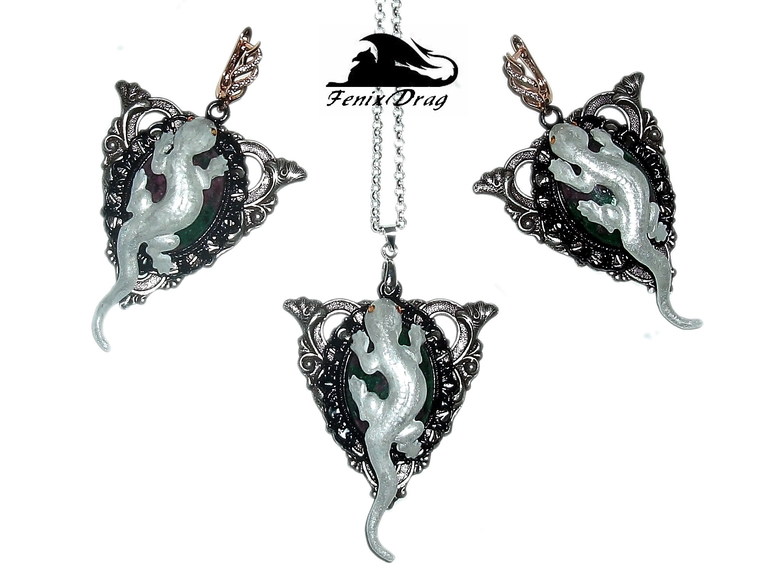 Спасибо! Саламандра из латуни хорошего качества, в покрытии белой эмалью. Эмаль...фактически как камень:))) То есть она не царапается даже, не откалывается, ничего с ней не происходит:) И глазки я еще в виде страз сделала:) Потом только когда стала фотографии уже смотреть, поняла, что фото где мордочку видно спереди так и не сделала:)