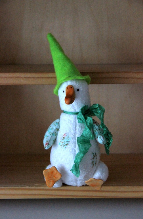 Лапки и клюв из фимо, сам гусяш плюшевый, колпак из фетра.