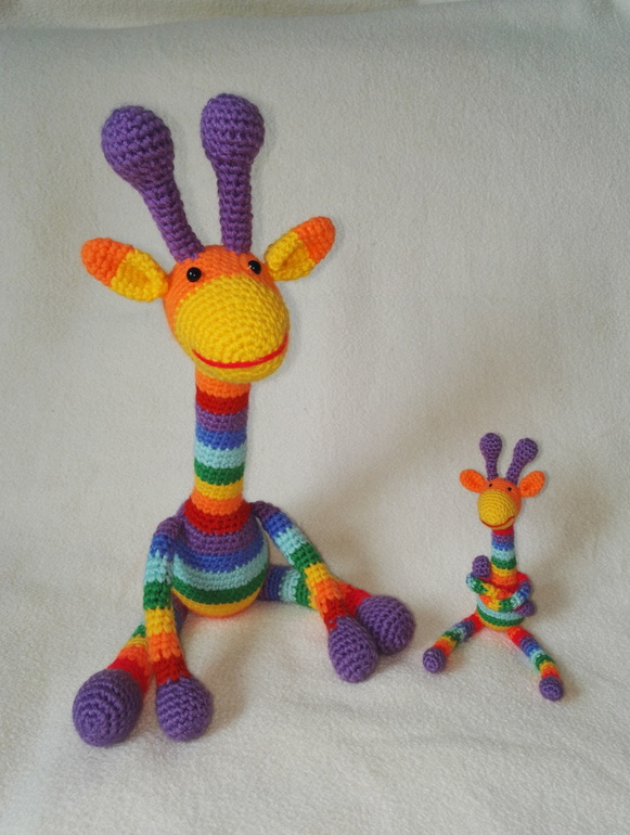 Игрушечный мир - животныеДобрый день.На днях связались вот такие два цветных и ярких,как радуга жирафика.
