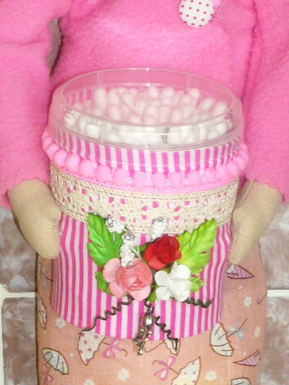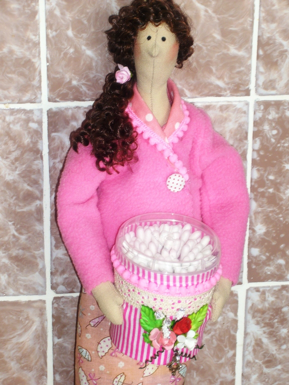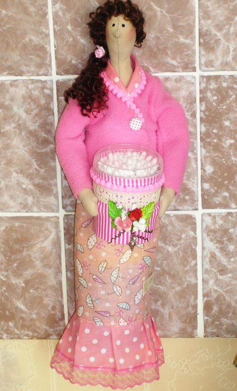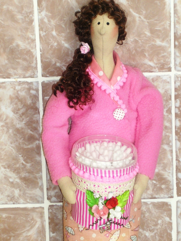 Кукольный мир - человекоподобные куклыСшила куколку для обмена ,на свою очередную хотелку))) Просили в розовой гамме. Под юбочкой помещается туба с ватными палочками,которая при необходимости ,легко заменяется на новую. Имеется петелька для подвеса.Имеет не только декоративную функцию,для украшения ванной комнаты,но и имеет функциональное значение,для компактного хранения гигиенических средств.Смотрим 4 фото.