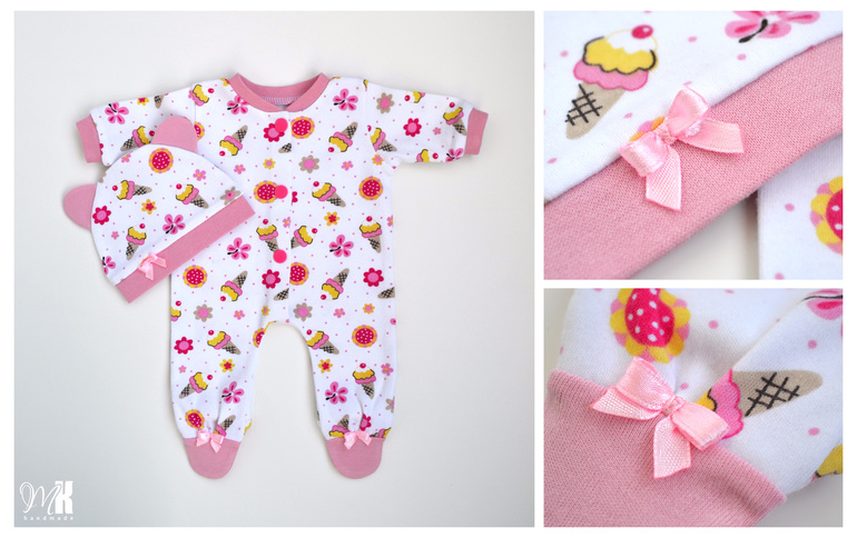 Слип и шапочка с ушками из нежного интерлока "мороженки", декор - атласные бантики.
