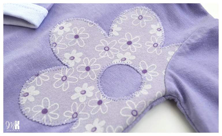Кофточка с длинным рукавом из сиреневой кулирки х/б. Декор - аппликация в виде цветочка.