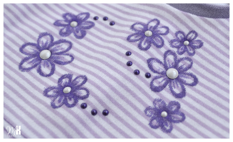 Ползунки из кулирки х/б, украшены бантиком. Кофточка с короткими рукавами из интерлока в полоску, декорирована рисунком фломастерами по ткани и стразиками.