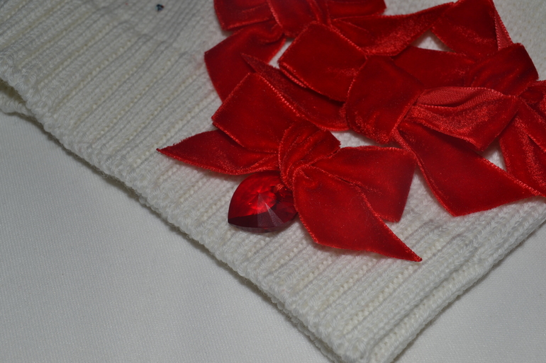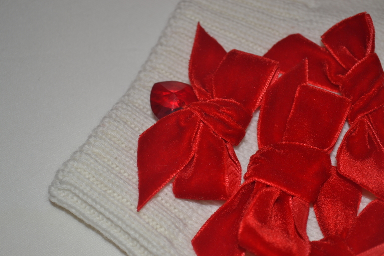 Машинная вязка (РАБОТЫ И СХЕМЫ)Нежная шапочка из итальянского мериноса. бархатные бантики, стразики СВАРОВСКИ. и умопомрачительный кристалл сваровски в виде подвески сердца