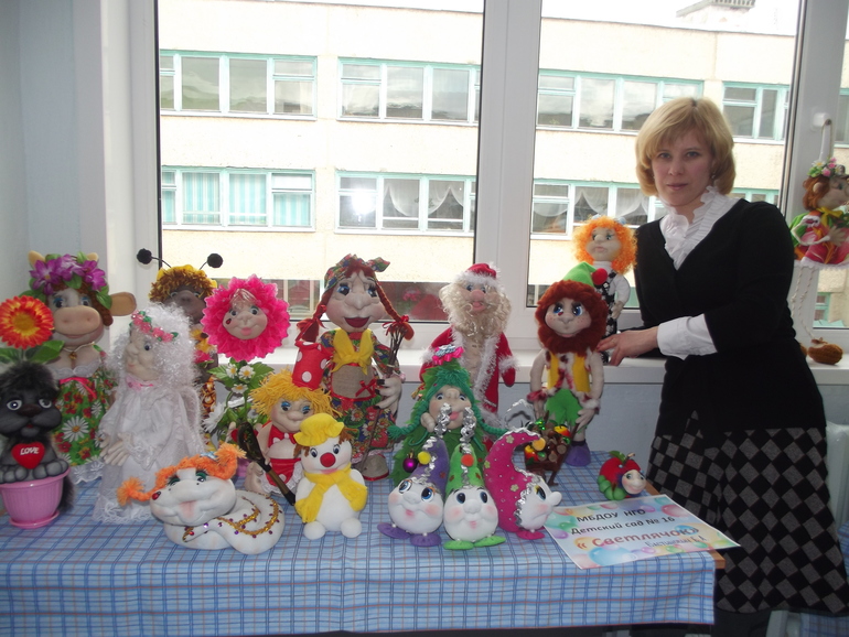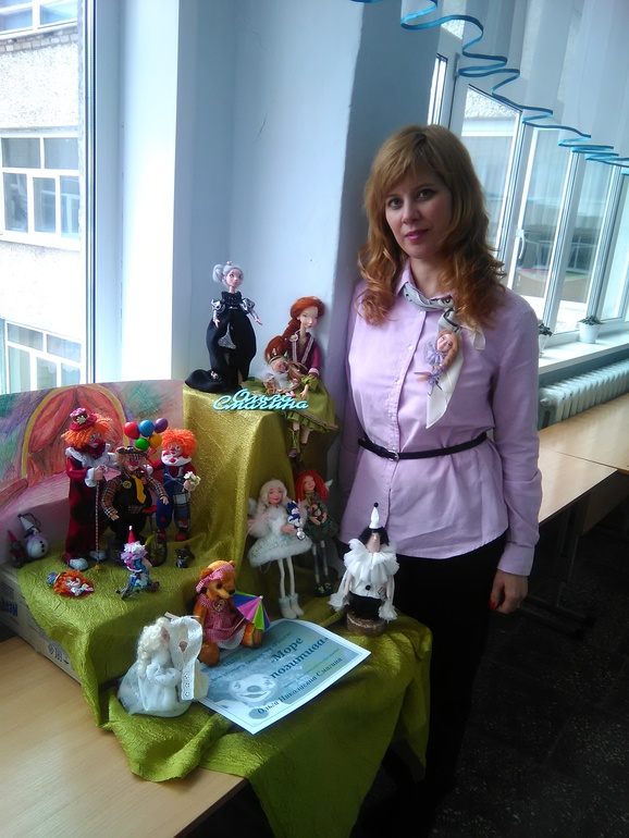 Сегодня у нас в городе прошла выставка среди образовательных учреждений, где талантами блистали воспитатели, педагоги, учителя и другие работники в этой сфере. Я приняла участие со своими куклами из пластики, а текстильных не понесла.