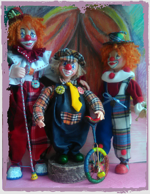 , надо что-то с этим делать. Тоже очень хочется сделать что нибудь в цирковом стиле, уже давно, даже материалы куплены и лежат в долгом ящике. А у тебя такое семейство веселое и очаровательное.