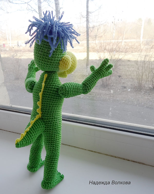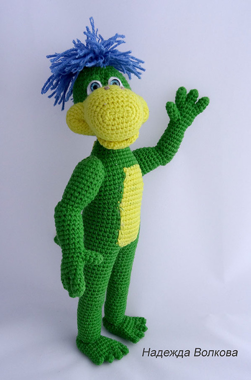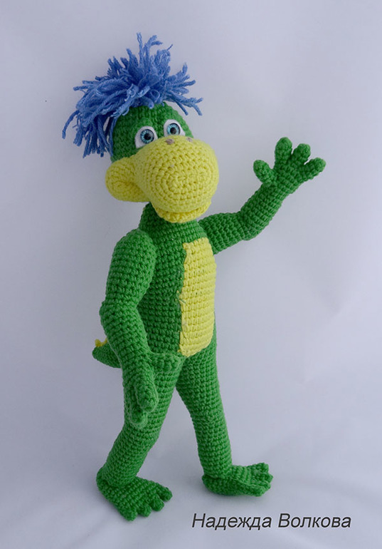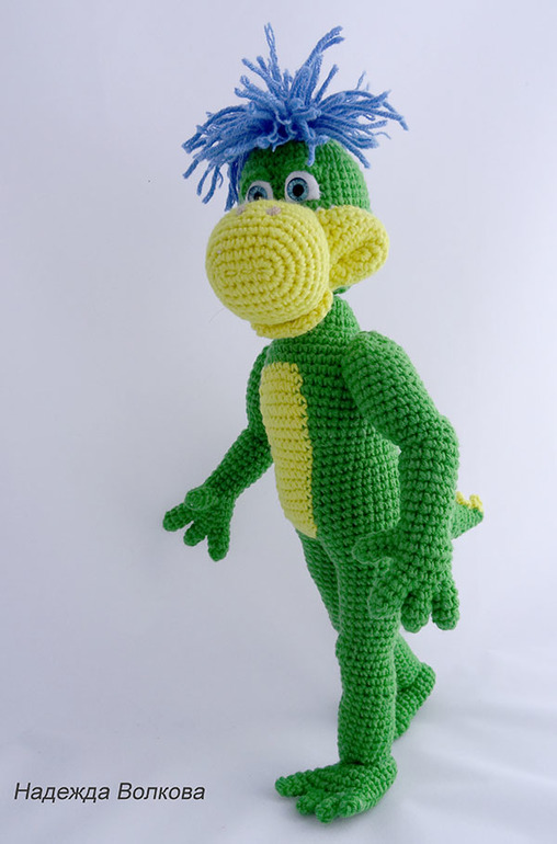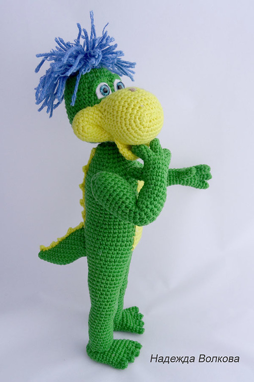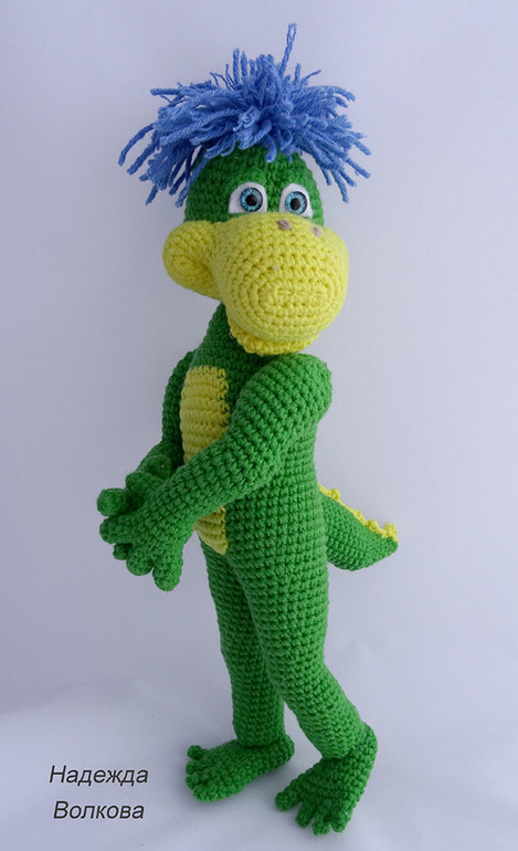 Амигуруми (вязаные игрушки)Девочки, позвольте представит вам мою новую авторскую работу - очень забавный и живой персонаж известной рекламы динозаврик Дино. Ростиком получился 27 см, пряжа Котон Голд, крючок 2. Голова и руки подвижные на суставах. Связался голеньким, так как хозяйка сама хочет пошить ему одежду.