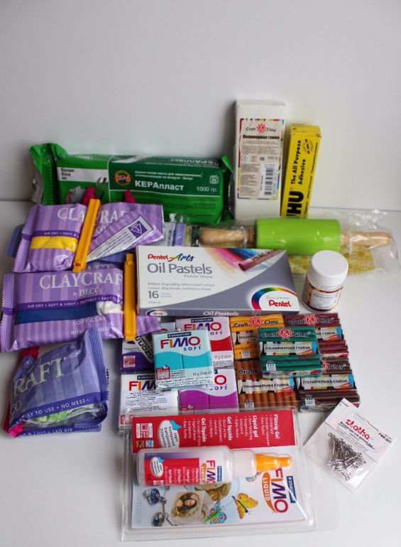 ...и кера пластика и фимо и ещё какой-то много(буду учиться разбираться в ней) и клей и краски и лак, и жидкая пластика, и фурнитура...короче всё у меня теперь есть)))