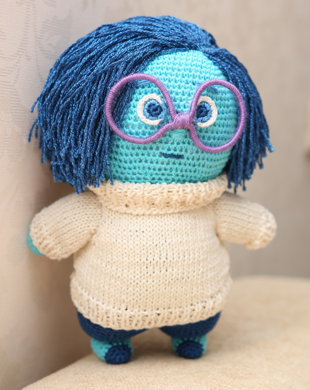 Амигуруми (вязаные игрушки)Вот такая Печалька из мультфильма "Головоломка" у меня связалась. Очень хотелось добиться более сильного портретного сходства, но что-то никак.