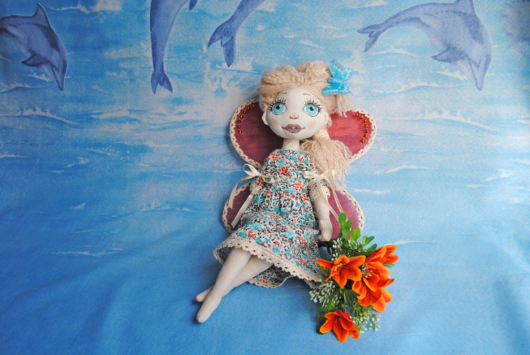 За спиной крылышки из органзы, украшенные кружевом и бусинками. Крылья гнуться.