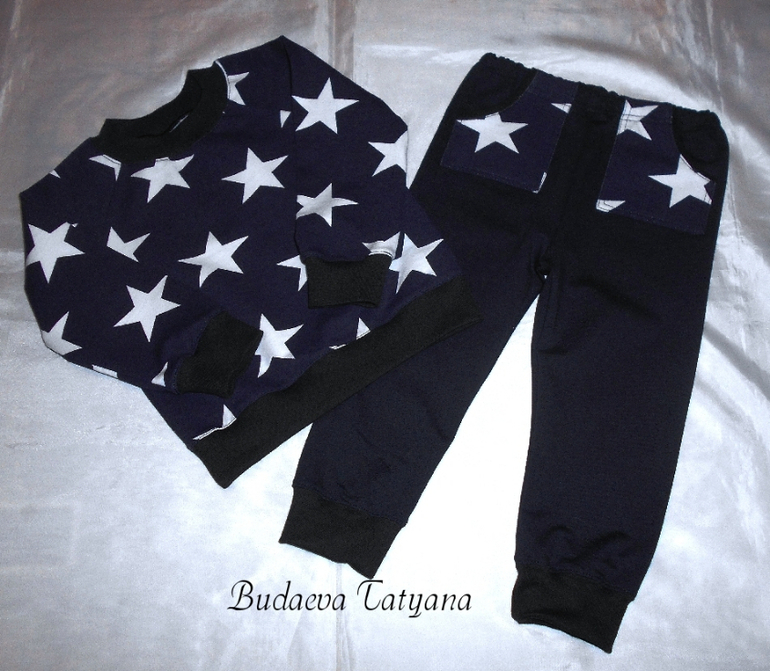 Конечно же для малыша ещё и штанишки,ну и папу что бы не обидеть вот такой свитшот)) На манжеты использовала рибану.