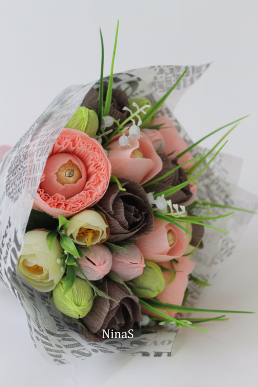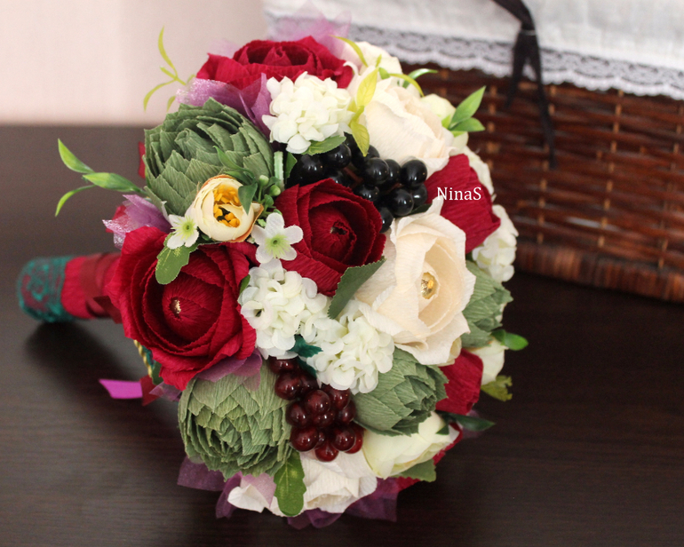 Нина, оочень понравился твой конкурсный букет! Расцветка не избитая,но от этого он только выигрывает, становится живее!