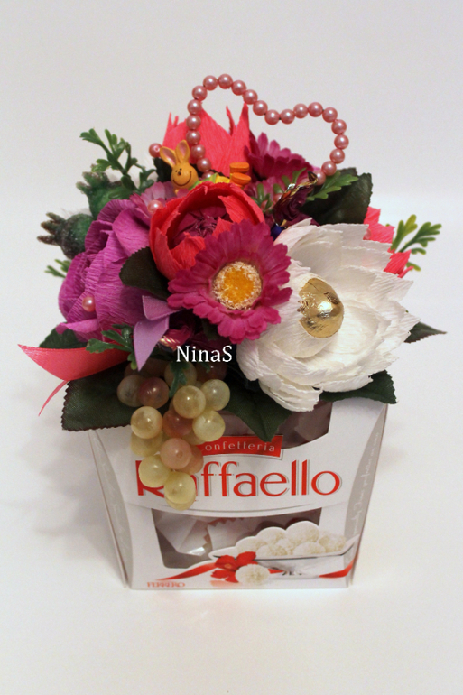Композиция из конфет на шаре "Весенняя палитра". Букеты из конфет мои работы