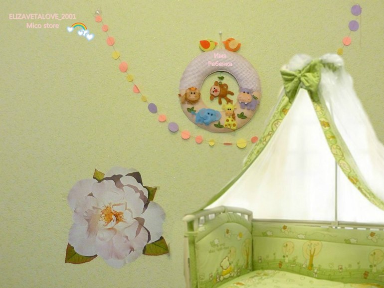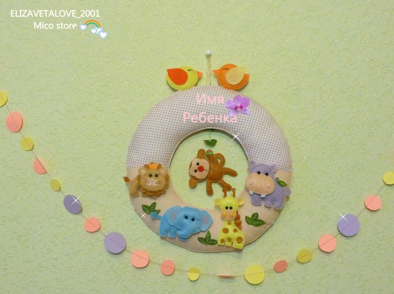 ФетрВот и мне захотелось сделать панно колечко . Начала шить колечко еще в январе , потихоньку за пару деньков сшила ( намучалась конечно , все вручную так как нормальной машинки нету ) , и зверушек за два дня сшила . Положила в тумбочку и забыла об этом панно пару недель назад вспомнила и дошила наконец то . Вот такое панно получилось .
