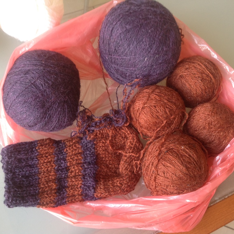 Хлопок с рюлексом, две ровницы и шерстяные ниточки - все вместе на шоколадку Аленка обычную