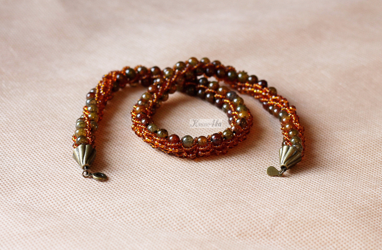 Жгут "Агатовое драже" выполнен из бусин агата "Вены дракона", чешского бисера и фурнитуры под бронзу.