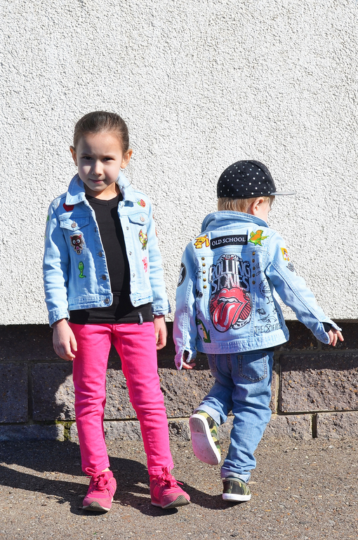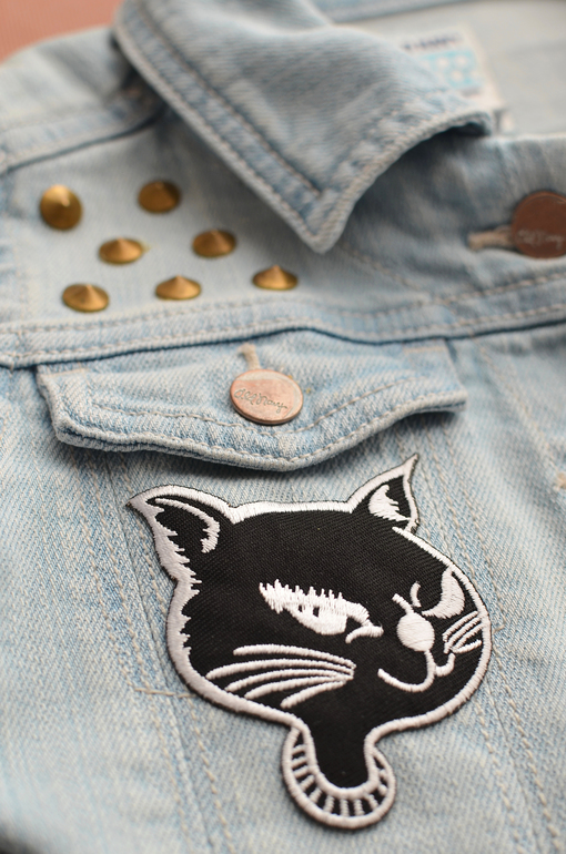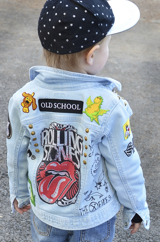 Как и в прошлый раз, в ход пошли термонашивки и краски для ткани. Еще добавила немного шипов, для брутальности)))))