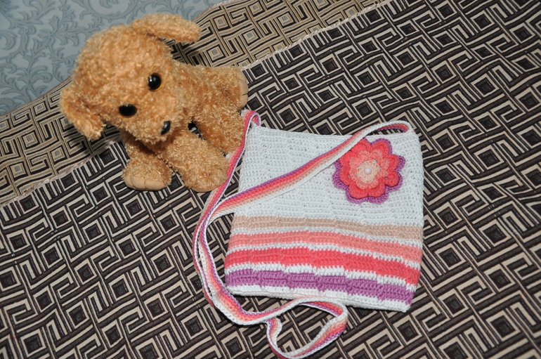 Моя дочка получила прекрасную сумочку, которую связала Лида. Счастью нет предела!