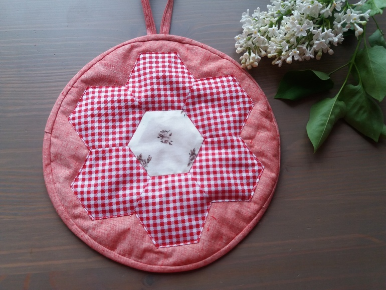 Мастер - классы, совместный пошив, он-лайны и другие рукодельные процессы (читаем правила!)Решила выложить МК прихватки в стиле пэчворк с шестигранниками.Вот такая получиться в итоге.