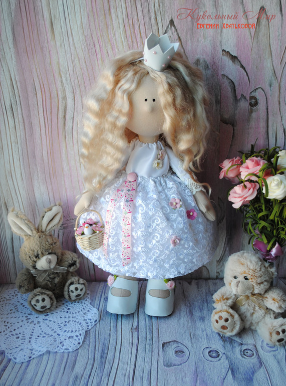 Кукольный мир - человекоподобные куклыДля маленькой девочки с чудесным именем Ева была сшита портретная принцесса. Фото самой Евы выложить не могу, т.к. она совсем малышка еще-2 года будет в июне. А вот фото ее куколки с удовольствием покажу. Платье сшито из атласа и кружева. Волосы-ангорская козочка. В ручке корзинка с цветами и голубком.