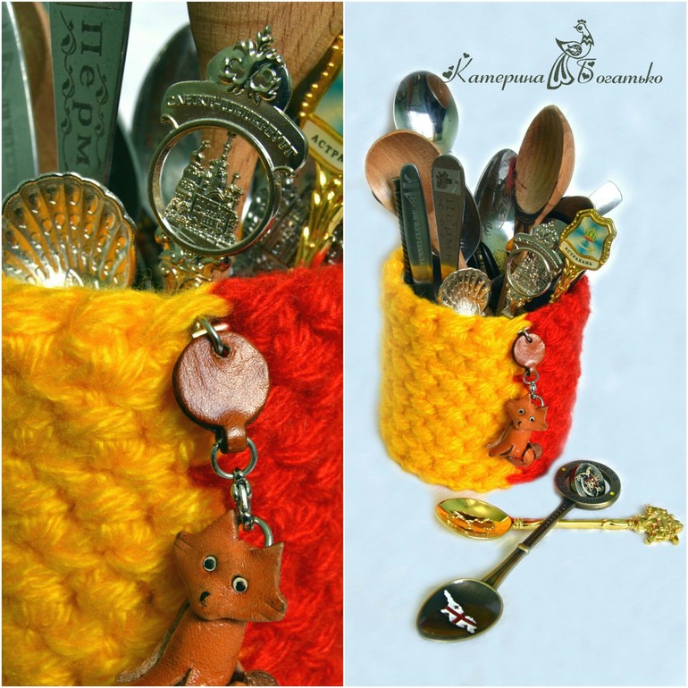 Вязание крючком (РАБОТЫ И СХЕМЫ)Моя коллекция чайных ложечек пополняется и для них получилась такая подставочка, украшенная подарочком от , подаренным 9 лет назад.